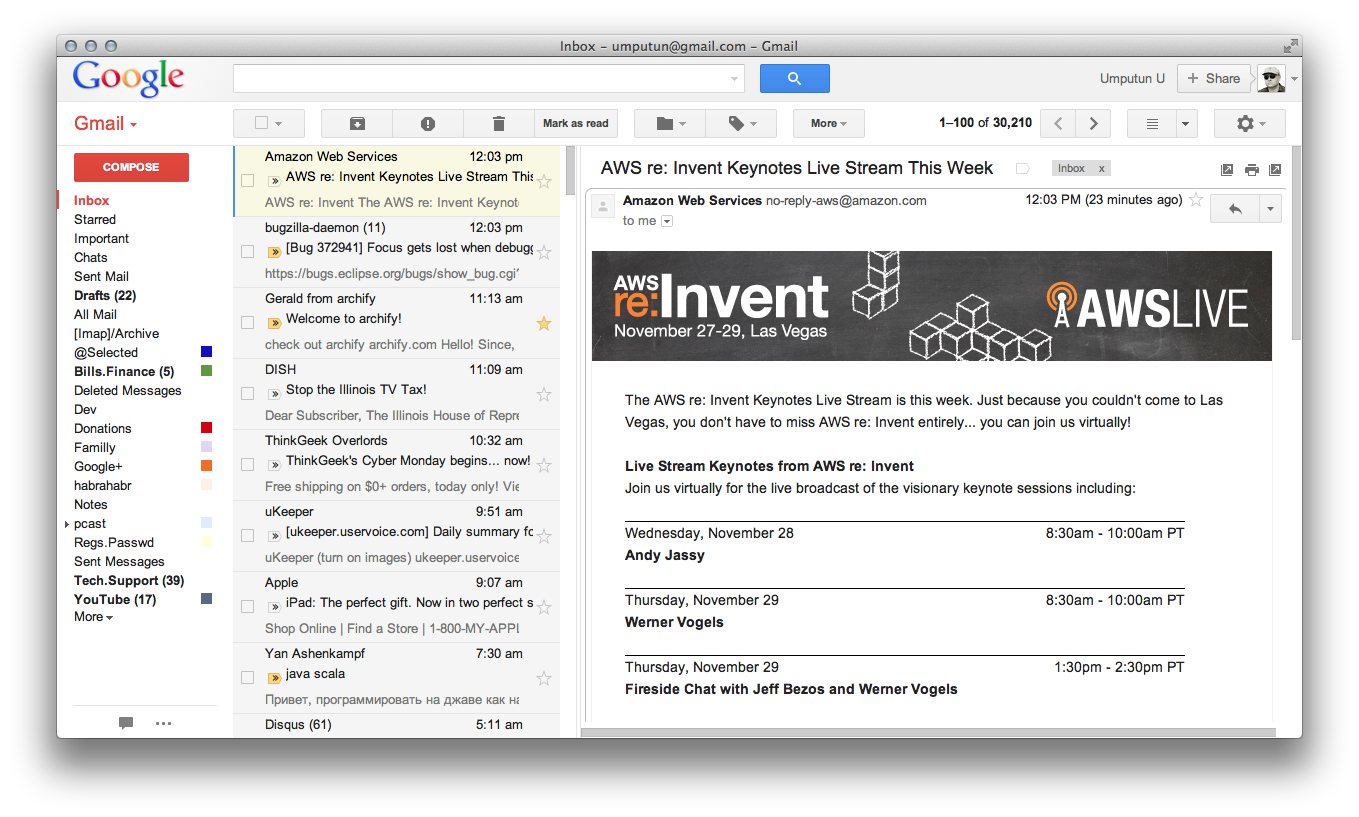 Результат хотя и не идеален, но вполне удовлетворителен. Основная проблема, с которой пришлось примириться, это медленная начальная загрузка. Да, у меня там много писем и gmail задумывается секунд на 20-30 при запуске, однако это происходит только один раз и потом скорость удовлетворительная, хотя конечно, те времена когда Gmail “летал”, увы, прошли безвозвратно.