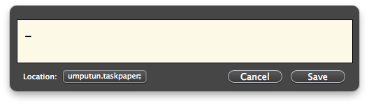 В TaskPaper можно одновременно работать с несколькими независимыми документами. Да, все эти списки это по сути неким особым образом отформатированные документы и ничего более. Для меня оказалось удобно завести один документ для домашних вещей и один для рабочих. Из окна быстрого ввода (по общесистемной горячей комбинации клавиш) можно добавить в любой из документов на выбор.