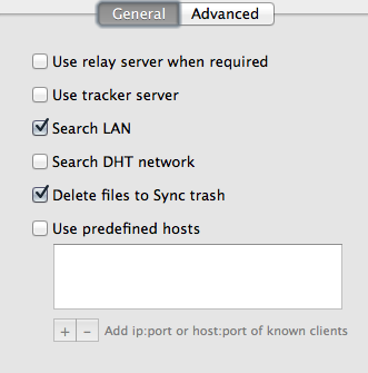 Еще пара слов для параноиков. Из btsync можно сделать полностью закрытую систему. Я не помню, как там по умолчанию, но если отключить все “Use …” и “Search …” опции и задать список ваших машинок в “Use predefined hosts” то BitTorrent Sync будет работать совершенно локально не отдавая ничего в злобный и опасный интернет. Но даже если этого всего не сделать, то ваши файлы все равно не окажутся на серверах btsync и, если верить тому что они утверждают, никакие данные из ваших файлов у них не хранятся. По моему мнению, лучше принять меры и со своей стороны если вас очень заботит неприкосновенность данных. Я именно так и поступил для всех персональных данных - отменил все опции выхода в сеть и вообще закрыл доступ btsync в большой мир. Скорее всего, эти меры черезмерны, но мне так спокойней.